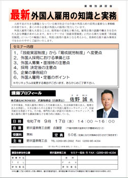 セミナータイトル:「外国人雇用の基礎知識と労務管理の留意点」