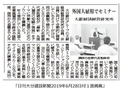 2019年6月19日 大分県大銀経済研究所様主催セミナーで講師を務めさせていただきました